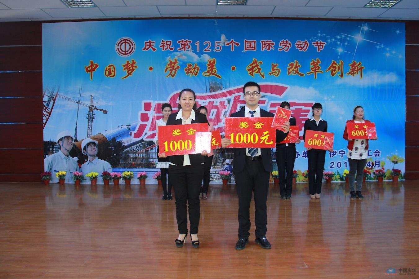 中國慶華新疆消息(馬進(jìn))為迎接第125個(gè)“五一”國際勞動(dòng)節(jié),踐行黨的群眾路線,切實(shí)開展職工主題教育宣傳活動(dòng),4月17日,新疆伊寧縣總工會(huì)主辦“中國夢•勞動(dòng)美•我與改革創(chuàng)新”主題演講比賽,比賽分為民族組與漢族組,各組分別設(shè)立一、二、三等獎(jiǎng)及優(yōu)秀獎(jiǎng)。最終,新疆集團(tuán)的阿拉法特與王瑤,包攬民、漢兩組一等獎(jiǎng),新疆集團(tuán)工會(huì)聯(lián)合會(huì)榮獲“優(yōu)秀組織獎(jiǎng)”。